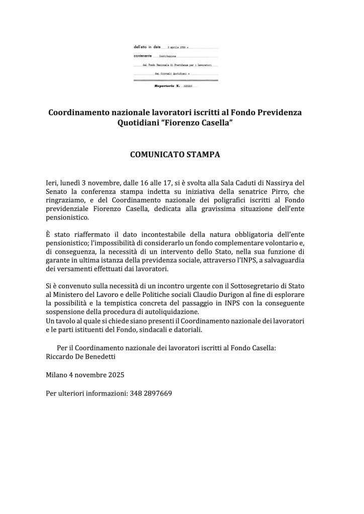 È sostanzialmente l’invito ad aprire, finalmente, una discussione concreta sulla fattibilità del passaggio all’INPS delle posizioni dei lavoratori iscritti al Casella.