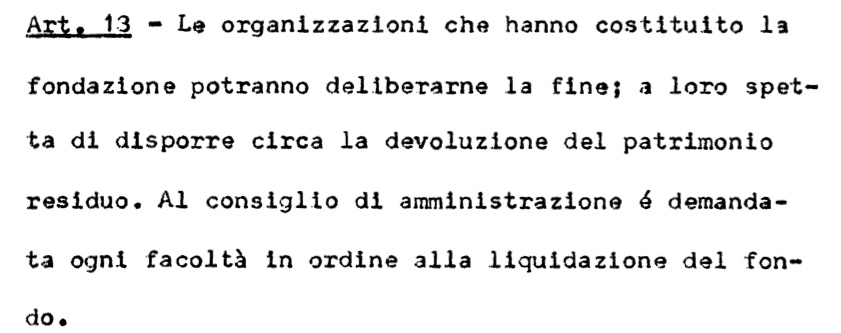 2- Ho capito che COVIP non ha alcuna possibilità di impedire o promuovere la famigerata “autoliquidazione”, un istituto che, a quanto mi risulta, non esiste nel nostro Codice civile. Esiste, all’art. 13 (divenuto 16 nell’ultima versione dello Statuto del Casella), la possibilità di deliberarne la fine e, sempre alle parti istitutive, l’obbligo di “disporre circa la devoluzione del patrimonio residuo. Al consiglio di amministrazione è demandata ogni facoltà in ordine alla liquidazione del fondo”.